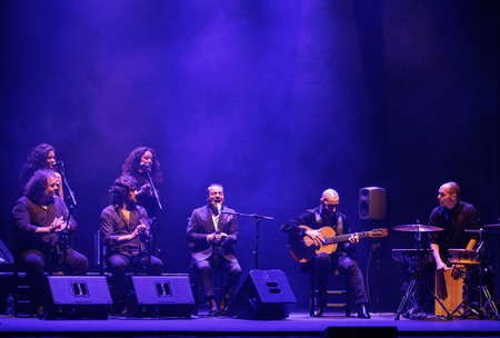 • d’autre part, des compositions personnelles por bulería et tango avec le guitariste Fernando Carrasco, le percussionniste Carlos Merino et les deux palmeros, Carlos Grilo et Diego Montoya, eux aussi compagnons de longue date du cantaor.