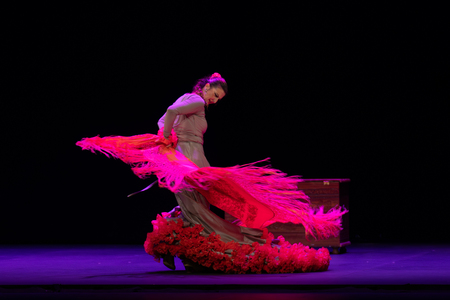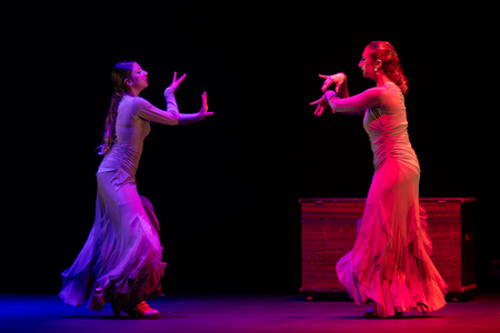 Avouons d’abord que nous ne connaissions pas María José Franco, que nous avons découverte avec plaisir grâce au Festival Flamenco de Jerez. Et confessons également que nous n’avons toujours pas compris le rapport entre la chanson populaire harmonisée pour piano et voix par Federico García Lorca et l’œuvre que la danseuse et chorégraphe a créé pour la vingt-neuvième édition du festival. Sans doute une signification symbolique qui nous échappe, la chanson n’apparaissant que par son titre, "Tararamía "et par deux brèves paraphrases exécutées au violon (Bernardo Parrilla) pendant son prologue et son épilogue. Peu importe d’ailleurs, son déroulé étant une succession de palos "à l’ancienne", avec comme seul fil conducteur (et élément de décor) un coffre à souvenirs dans lequel la bailaora puise divers accessoires et costumes dont elle change rapidement sur scène pendant les préludes instrumentaux — la fluidité des enchaînements est l’une des qualités du spectacle. Les musiciens sont regroupés en fond de scène, côté cour, de sorte que tout l’espace scénique est dévolu à María José Franco qui l’occupe avec présence et autorité — parfois, brièvement, en duo avec sa fille, Ana Moneo ou avec África Moreno.