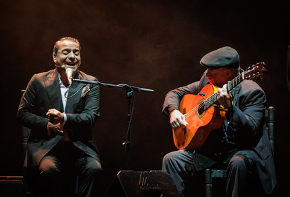 Plus courte, la deuxième partie du programme démontrait qu’en matière de cante, comme d’ailleurs pour tout autre genre musical, la distinction entre "grand" et "petit" répertoire est absurde. Seules la technique et l’esthétique vocales déterminent le caractère "flamenco" d’une interprétation. Première illustration évidente avec le pasodoble historique “Mi torre de San Miguel" enregistré par Lola Flores en 1954, revisité en forme de canción-zambra. L’accompagnement de Paquito González, aux balais et en frémissements de cymbales, était en lui-même un délice. Voir le percussionniste danser tout au long du récital avec les bras, les épaules et le torse est un réjouissant spectacle à part entière. C’est sans doute la raison pour laquelle son jeu minimaliste est d’une redoutable efficacité, la moindre ponctuation affleurant naturellement d’un flux intérieur de compás ondulant. La canción por bulería "Tres veces loco" de Bambino (1975) enfonçait le clou, sur un entrelacs d’arpèges de guitare et un tempo plus modéré que celui de la version originale qui mettaient bien en valeur de dramatisme crescendo de l’interprétation.