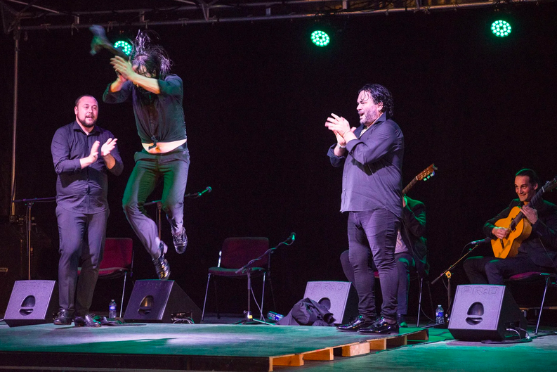 Après une conférence, qui s’efforçait de répondre à l’épineuse question "Qu’est-ce que le flamenco", et une initiation aux sevillanas, la soirée du samedi était entièrement consacrée au baile, avec le spectacle de José Maya. Saluons d’abord le courage et le professionnalisme de Mathias "el Mati" Berchadsky et de Dani Barba, qui remplacèrent au pied levé le guitariste Yoni Jiménez.