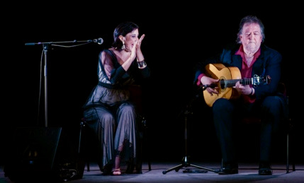 Le programme du récital était pour l’essentiel tiré de celui de l’album indispensable "Tejiendo Lunas" (Music Pendulo, 2015), non sans quelques inédits : tangos ( cantes de Juana "la Revuelo", Pastora Pavón "Niña de los Peines" et Tía Marina Habichuela, ponctués de deux compositions d’Enrique Morente et associés à un chant de la tradition des Roms des Balkans) ; malagueñas de La Trini et de La Peñaranda et fandango de Frasquito Yerbabuena (un parcours historique à rebours de la genèse des malagueñas : ad lib / rythme abandolao rubato sur tempo modéré / rythme abandolao sur tempo vif façon verdial) ; cantiñas de Pastora Pavón avec une introduction por rosa, reprise au cours de la série (Laura Vital est la spécialiste actuelle de la rosa, qu’elle a reconstituée à partir d’un enregistrement fragmentaire de Ramón Medrano) ; granaína avec, en introduction, un chant d’Oum Kalthoum dans la langue originale (ce dernier, repris a compás de tango pour le final, donna toute la mesure de la connivence du duo avec le public : après une fausse sortie, une nouvelle reprise fut accompagnée spontanément par les palmas des spectateurs – en mesure, ce qui est rare en France…) ; fandangos de Huelva dont l’interprétation faisait honneur au père de la cantaora, grand expert du genre ; bulerías sur le fil conducteur de cantes de La Perla de Cádiz, avec inserts de compostions de Juana Cruz (la mère de Camarón) et de María "la Sabina" (nous avons particulièrement admiré la créativité des phrasés rythmiques de Laura Vital sur des compositions de La Perla dont nous avons pourtant écouté quelques centaines de versions). Ajoutons que pour les fandangos et les bulerías, la cantaora se livra à l’exercice obligé du chant en avant-scène, sans que l’on observe un notable déficit de puissance malgré l’absence de micro.