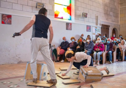 La pluie, qui jusqu’alors nous avait épargnés, obligea Chloé Brûlé et Marco Vargas à adapter leur scénographie, qui était prévue pour une représentation en plein air au bord de la Loire (Le Thoureil), à l’espace de la nef de l’église voisine. Ce fut chose faite en quelques minutes, et l’on mesurera par là leur respect du public et leur conscience musicale : non seulement le nouveau dispositif scénique permit à chacun de ne rien perdre du spectacle, mais ils adaptèrent le fin nuancier de leurs zapateados à une acoustique radicalement différente. Pour remercier les spectateurs qui les ovationnaient, les deux artistes leur offrirent des bulerías impromptues sur des cantes jerezanos a capella de David "el Gamba" (décidément infatigable) : preuve, s’il en était besoin, qu’ils savent aussi le faire.